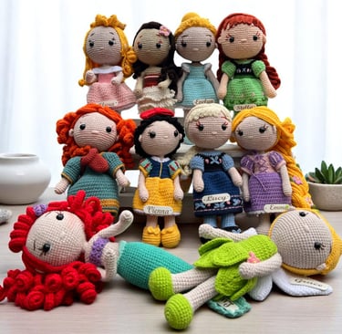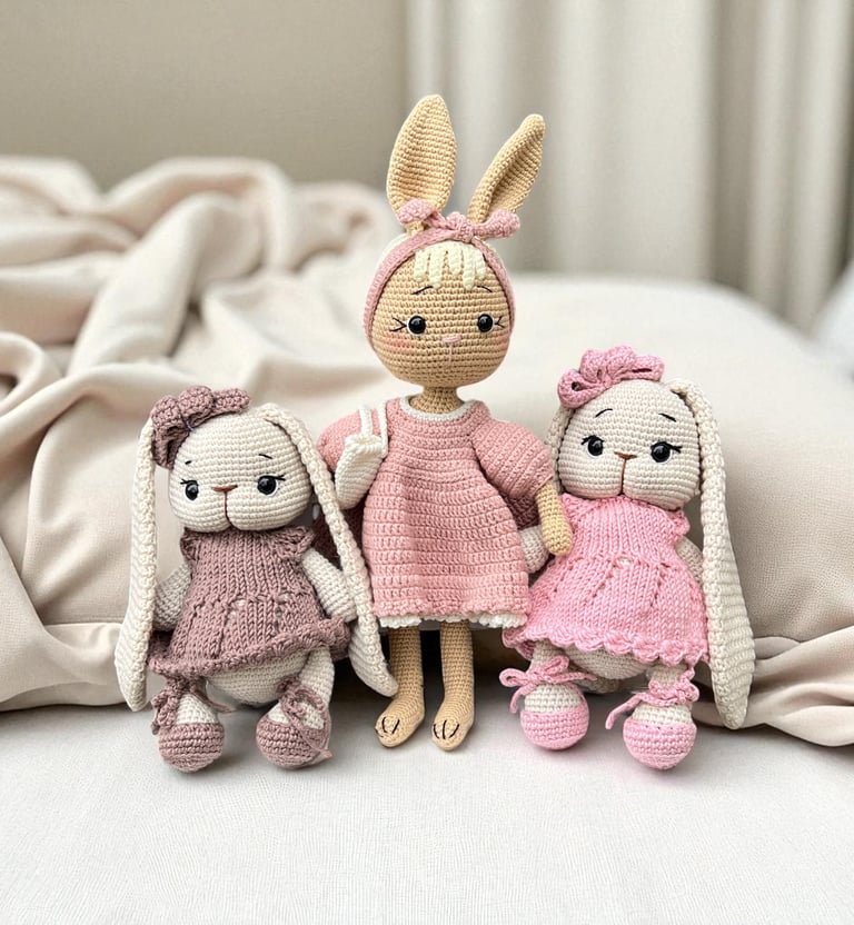 Delicate stitches bring each doll and accessory to life with thoughtful detail.